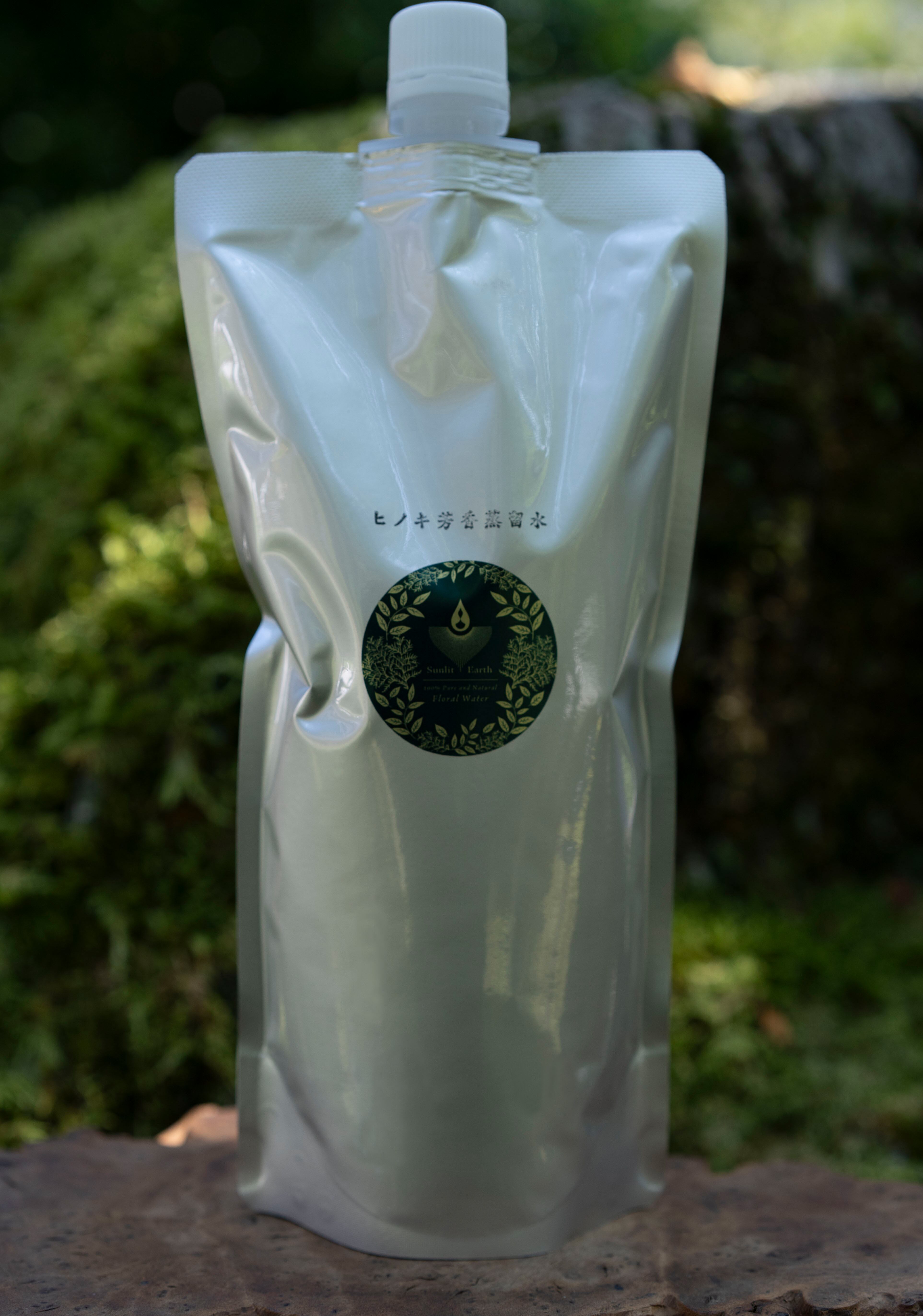 ヒノキの芳香蒸留水を濾過してそのままパックにしました。